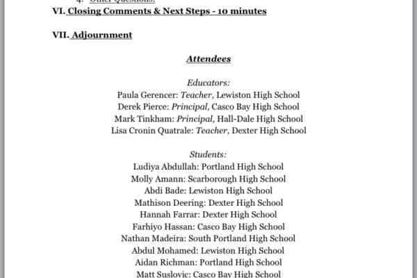 On Friday, May 19, Mathison Deering (Junior) and Christopher Roderka (Sophomore) took part in a meeting with Robert G. Hasson, Jr., the Maine Commission of Education, in effort to start a Student Advisory Council for the Maine Department of Education. Eventually, this committee will include high school and college students from all across Maine. As DRHS representatives, Mathieson and Christopher were two of nine students present at Friday’s meetings. The other students attend Deering High School, South Portland High School, Portland High School, Casco Bay High School, Hall-Dale High School, and Lewiston High School. Two teachers and and two Administrators were also in attendance. They were English teacher, Lisa Quatrale of DRHS; French teacher, Paula Gerencer of Lewiston High School; Principal, Mark Pinkham, of Hall- Dale High School; and Principal, Derek Pierce of Casco Bay High School.
