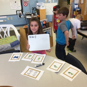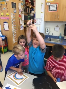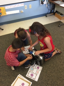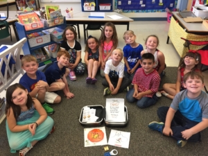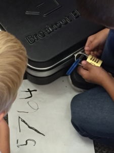 Mrs. Stevens’ First graders had the opportunity to stretch their minds and thinking to discover if they had what it takes to unlock a breakoutedu on dot day September 15, 2017. They arrived at school thinking it would be a normal day when they started noticing that pictures and a locked box was a little out of the norm in their room. When Mrs. Stevens told them briefly the story how the eraser had come in their room the night before and thought that he would try and stop their creativity and imagination by locking all their drawing paper and a few other things into the blackbox that had several different types of locks attached to it they quickly set out to regain their belongings using teamwork and their thinking skills. Together they had to figure out what was a clue, which clues went together, the meaning behind some of the clues and which clues were to unlock which combination that would eventually open the box holding their belongings. It was an amazing sight to see how each kid possessing different expertise would step up and pick up where others started to help each other eventually gain success! Their frustrations, excitement, energy and joy was a sight to be seen. Clearly the eraser could not stop this set of first graders from using their creativity and imagination!!
