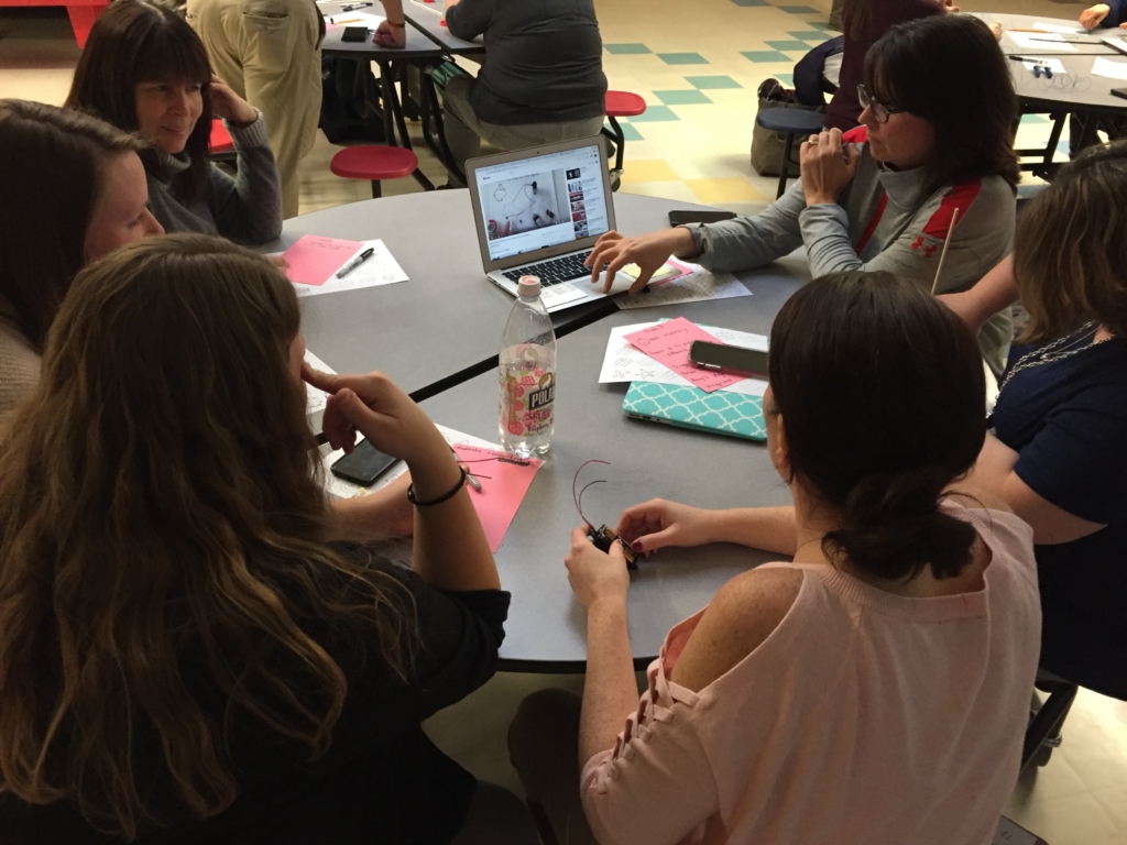 On the afternoon of January 7, 2019, RVCS staff had an opportunity to explore and learn about the NEW portable STEM Maker Cart. The STEM Maker Cart is meant to support the teachers in bringing hands-on Science-Technology-Engineering-Mathematics to all students in a fun and engaging way. The Maker Cart is full of motors, LEDs, tools, dowels, wires, wheels, pulleys, gears, and more to allow students opportunities to experiment, build, and grow. Teachers have access to dozens of pre-designed activities, and students will be able to dive into making rubber-band cars, wind turbines, hydraulic systems, bridge building, and more.